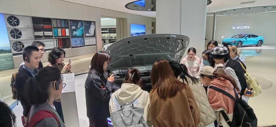 最后,在小米讲解人员的带领下同学们参观了小米汽车工厂。在SU7的车辆展厅以及零件展示区,展出了各种精密的汽车零部件,从发动机到轮毂,每一件都体现了小米对产品质量与创新的追求。随后,同学们参观了自动化程度极高的生产车间。在这里,许多机器人正在忙碌地工作,它们准确无误地完成着各种复杂的工序。这种高效、精准的生产流程为未来制造业的发展带来更多可能。最令人兴奋的环节莫过于试驾SU7,坐上这辆的汽车,驾驶员起步、加速、转弯、刹车,每一个环节都展现了小米汽车的稳定性,也给同学们留下了深刻影响。