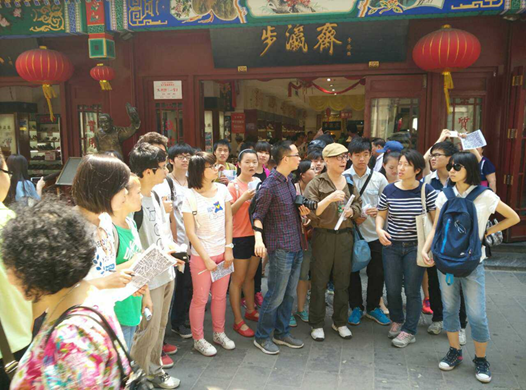 5月24日上午,beat365城市管理系副系主任王伟老师和城市管理系讲师那子晔老师带领2014级城市管理班全体同学前往北京大栅栏地区进行实地调研,开展《全球化与中国城市发展》课程的实践教学活动。王伟老师同时邀请了校外指导老师——曾历任首都经济贸易大学工商系副主任、《学报》主编、《首都经济瞭望》主编、首都经济研究所副所长、长城旅游学院副院长的袁家方教授为同学们进行讲解。