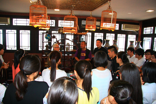 午餐期间,袁教授还与同学们分享了他年轻时的经历。袁教授告诉同学们“做人最重要的是三力——体力、智力和意志力,体力和智力是有限的,意志力是无穷的,而无穷的意志力是在积累体力和智力的过程中磨练出来的”,同学们铭记于心,勉励自己前行。午餐结束后,同学们与贾大爷合影告别,继续大栅栏之旅。