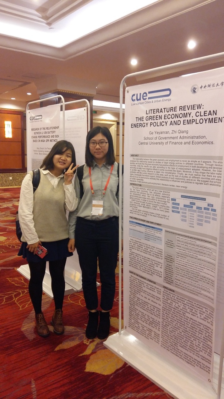 beat3652012级行政管理专业本科生葛野嫣然和2012级公共事业管理专业城市管理方向本科生谭翠萍在青年教师智强的带领下参加了此次学术会议,她们与老师合作的两篇论文(学生为第一作者)均被会议接收。论文出自《资源与环境管理》课程,在智强老师精心指导下完成。葛野嫣然的论文《Literature Review: Green economy, clean energy policy and employment》以海报的形式展示了绿色经济背景下清洁能源与就业之间的关系,从就业影响的角度出发搭建了文献框架;谭翠萍的论文《The energy-water nexus:Literature review on the dependence of energy on water》以口头报告的形式展示了当今能源领域较为前沿的水能关系问题,探讨了不同类型的能源对水资源的依赖,与会者表示出浓厚的兴趣和赞许,并就相关问题与她们进行提问和交流。beat365学生扎实的研究、自信的交流、虚心的学习,给与会人员留下了良好的印象。