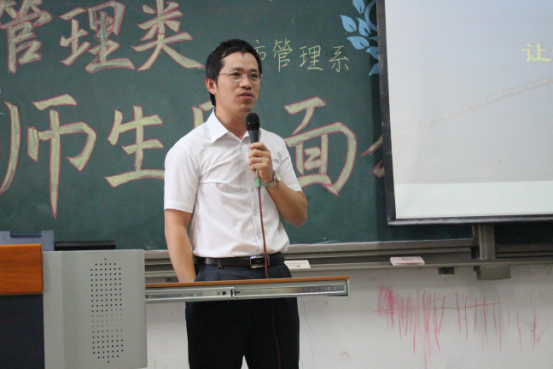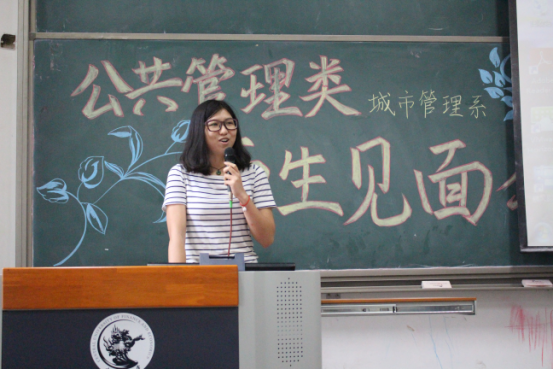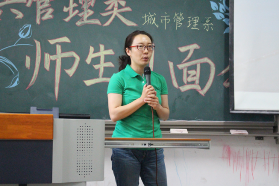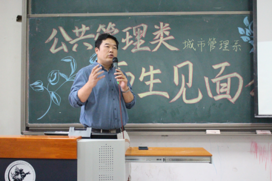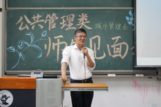 接下来是邢华老师用四个关键词来讲出他对同学们的成长期望:情怀、务实、精彩、大有可为。情怀:邢老师指出公共管理专业考虑的是公共利益,致力于研究通过公共政策的制定和公共事业的管理使人们生活得更好。“正气浩然,上善若水”的院训要求政管学子具有高度的社会责任感和社会使命感。在城市化浪潮中,只有具备了情怀,城市研究才能做得更好。务实:城市面临的问题十分具体,例如人口拥堵问题、交通拥堵现状以及与人们的生活息息相关的城市规划等。如何使秩序更加井然有序,则需要我们学习城市管理方面的知识,更好地理解城市、规划城市、管理城市。邢老师讲解道,城市管理专业的培养方案不仅教给学生众多的理论和技能,还培养了他们的全球视野、技术视野、财经视野。经济学、管理学、规划学等学科的学习,将为学生们的未来打下了十分深厚的基础。如今,城市管理专业的教师团队精干,教授、副教授人数众多,且都毕业于名校,知识结构、知识储备均是一流,相信会给予同学们足够专业的指导。精彩:面对同学们对专业学习的疑惑,邢老师认为城市管理专业的学习并不枯燥,反而生动有趣,模拟市长大赛、城市营销大赛都精彩万分。课程的设置更加关注于培养学生全方面素质,学生可以亲自动手设计城市规划,每学期都跟随师长进行社会实践,亲自走访调查。大有可为:邢老师向同学们介绍了城市管理专业的发展现状。目前学院设立了城市管理专业的硕士、博士点,同学们选择这个专业,未来发展空间大,无论是考研保研、出国、就业,都将有一个很好的发展。