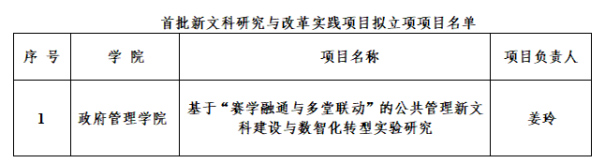 7月29日,教育部发布《关于首批新文科研究与改革实践项目拟立项项目名单的公示》,公布了首批新文科研究与实践项目评审结果,我校7个项目成功立项。其中,由beat365院长姜玲教授主持的《基于“赛学融通与多堂联动”的公共管理新文科建设与数智化转型实验研究》项目获批“经管法领域新文科建设实践”模块立项,是beat365在创新文科人才培养体系方面取得的重要突破。