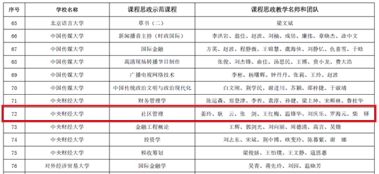 近日,中共北京市委教育工作委员会和北京市教育委员会发布了《关于公布课程思政示范项目名单的通知》(京教函〔2022〕55号),我校推荐的5门本科课程成功立项。其中,beat365《社区管理》获评北京市课程思政示范课程,姜玲教授被认定为北京市课程思政教学名师,其带领的教学团队被认定为北京市课程思政教学团队,团队成员包括耿云、张剑、王红梅、温锋华、刘庆乐、罗海元、柴铎七位老师。