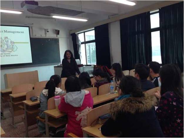 Roli Varma教授在课堂上通过案例分析、小组讨论、课堂演讲、论文写作等多种教学形式,介绍项目管理理论和应用,启发学生批判性思维,丰富学生知识结构,鼓励学生课堂发言锻炼英文水平,并且定期与学生交流,答疑解惑。在美式教学方式中,同学们不仅学到了知识,而且亲身感受到中美文化的差异。Roli Varma教授为全院师生举办的两场学术报告《关于在美国的中印技术移民》,介绍了美国移民政策变迁,尤其是中印技术移民为美国经济社会发展做出的巨大贡献,并与学院老师深入交流了中印两国近年支持和吸引留学归国人员政策对两国经济社会发展的长远意义,以及经济全球化背景下的国际人才协作问题,使师生们了解了相关领域学术研究的最新进展。