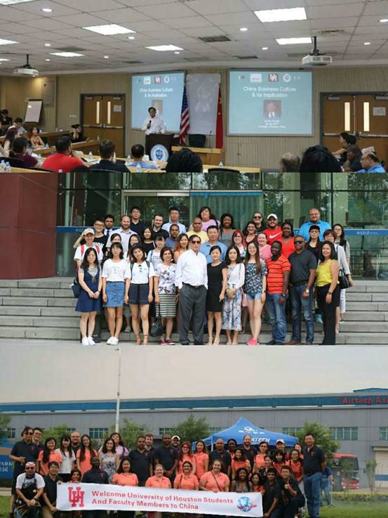 21日,研修班前往济南,入住三株集团。22日至30日围绕领导管理理论与消费论进行为期一周的学习。休斯敦大学维多利亚分校商学院副院长王吉富教授主讲了西方现代领导管理的前沿理论,王教授通过性格测试、案例分析等方式,通过小组讨论的学习形式加深了同学们对管理理论的理解和掌握,同时通过交流了解中西方的性格差异。三株集团董事长吴炳新先生讲授了消费理论的“一般规律和特殊规律”、“领导力:一般规律与实践”、“三大消费和他们之间的联系”以及“国家宏观调控体系”,将企业管理实践与学术研究结合起来,提出了一套认识消费行为、经济运行和社会发展的新方法。山东省社会科学院高级研究员李鑫生教授讲授了中国古代管理思想家老子、孙子、管子和孔子的管理思想,介绍了中国现代管理思想的文化根基。此次研修班,除了学习课程体系之外,还开展了丰富多彩的活动,深入到生活中了解中国的传统文化。参观埃尔泰克亚洲总部和三株集团,感受中美企业管理的异同;拜访孔子故乡参观孔庙,探访儒家文化的发源地;登顶泰山,感受五岳独尊的一览众山小;一起学习包水饺,体验中国美食的制作过程。30日,研修班分组分别进行了汇报学习心得,同学们相互交流、精心准备共同完成一场场精彩的汇报,中美同学间思维的碰撞、文化的交流和传播赢得了在场师生的一致认可和高度评价。
