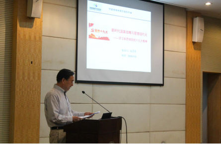 “学习贯彻党的十九大精神”是本次会议的重要议题之一。赵景华院长应邀以“新时代的国家战略与管理现代化”为题作专题报告。报告理论联系实际,紧扣党的十九大报告,围绕习近平新时代中国特色社会主义思想这一主线,解读了党的十九大提出的新思想、新论断、新要求、新任务;回顾了改革开放以来不同历史发展阶段我国政府重点解决的战略问题,在此基础上分析了当前我国的重大战略部署、管理现代化的变革与战略应对,以及创新引领下的战略协同等方面的内容。