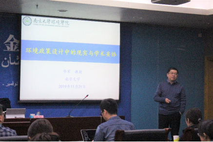 毕军教授就中国环境风险管理策略制定提出了若干问题与启示,提到了环境政策设计中的妥协、妥协与智库的关系,以及从妥协中衍生出的科学问题。此外,他还与在座的各位老师同学分享了自己的团队发展经验,使在座师生受到了很大的启发。