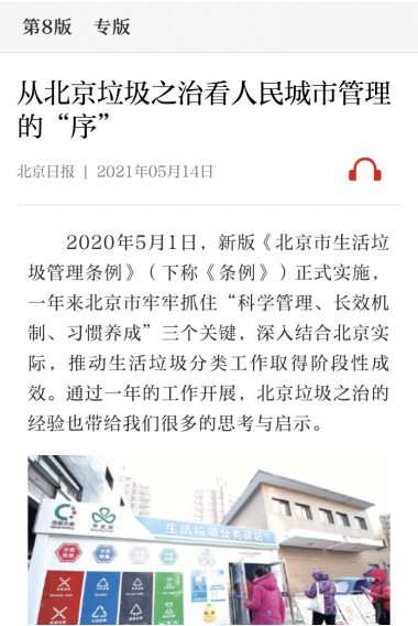 5月14日,beat365城市管理系主任王伟副教授、本科生王盼兮在《北京日报》发表题为《从北京垃圾之治看人民城市管理的“序”》的文章,就北京市垃圾治理问题发表观点和见解。