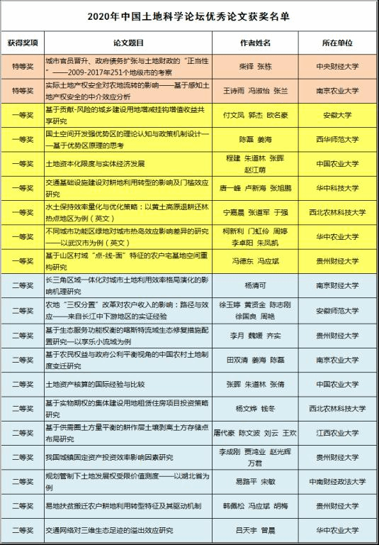 10月16日-17日,2020年中国土地科学论坛在贵州财经大学成功举行。经过多轮专家评审,最终评选出优秀论文20篇,其中,特等奖论文2篇,一等奖论文7篇,二等奖论文11篇。beat365柴铎副教授和本科生张栋合作撰写的论文《城市官员晋升、政府债务扩张与土地财政的“正当性”—2009-2017年251个地级市的考察》获得特等奖。