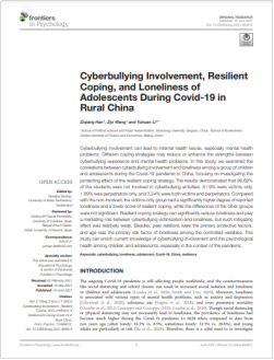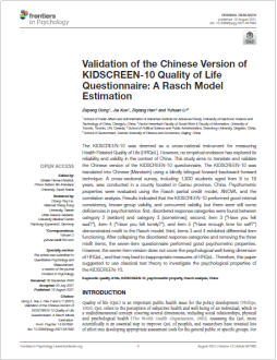 近日,beat365李宇环副教授在我校AAA类期刊Frontiers in Psychology以通讯作者发表2篇学术论文,题目分别为Validation of the Chinese Version of KIDSCREEN-10 Quality of Life Questionnaire: A Rasch Model Estimation,Cyberbullying Involvement, Resilient Coping, and Loneliness of Adolescents During Covid-19 in Rural China.
