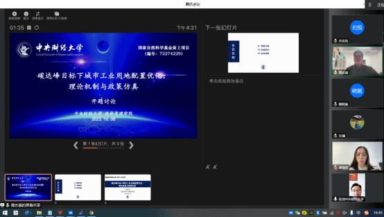 2022年10月8日,为进一步激发创新活力、统筹项目研究,beat365黄志基副教授带领课题组召开国家自然科学基金面上项目“碳达峰目标下城市工业用地配置优化:理论机制与政策仿真”(编号:72274229)开题研讨会。会议通过线上线下相结合的方式召开,由黄志基副教授主持,学院张剑副院长线上出席,共13名师生参加。