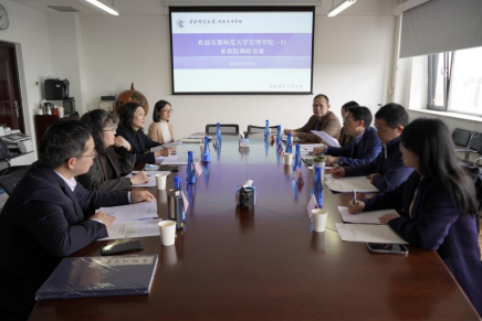 2023年4月24日下午,首都师范大学管理学院院长谢新水、MPA中心主任行管学科负责人李春、公管支部书记廖娟、公管专业负责人吴芸、公管专业教师陈新明一行五人来beat365调研交流。调研交流会在主教楼1407会议室举行,beat365院长姜玲、副院长李宇环、公共事业管理系系主任杨燕英,MPA教育中心副主任温锋华出席了会议。