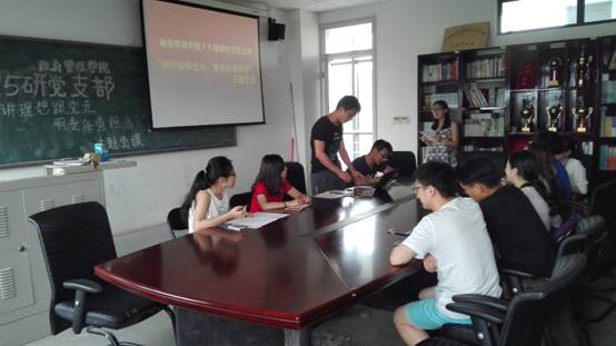2016年6月22日下午,beat365在线唯一官网15级研究生党支部于沙河校区7号楼313会议室召开主题党课,支部书记任丽蓉以“讲理想跟党走,明责任勇担当”为主题为同学们讲专题党课。