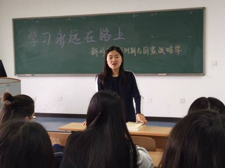 其次,崔晶老师就当下国家战略展开简要分析,同学们认真聆听老师讲解并做好笔记。她指出当下国家战略发展的大体方向,并就国家安全尤其是网络安全发表自己的观点,建议同学们多关注相关著作,丰富自己的专业知识,开阔眼界,重新认识党史、中国史和行政管理史,针对国家管理拥有自己的思考,做当下先进、有为青年。