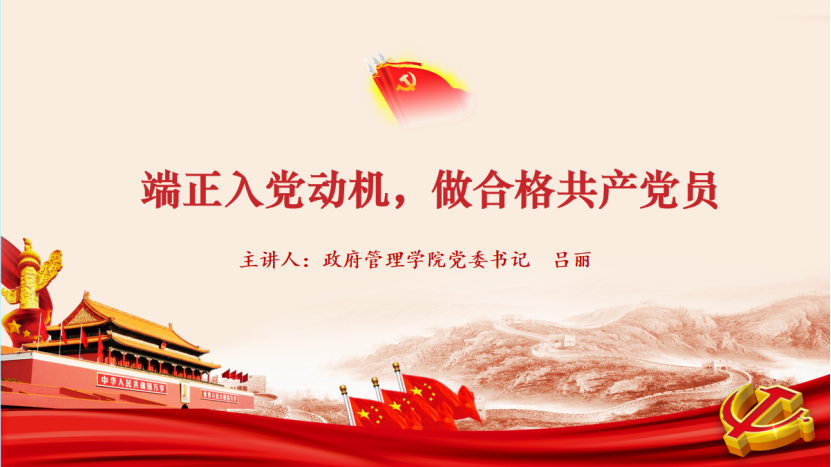 至此,本次入党积极分子党课第一讲圆满结束,同学们经由此次学习,深刻认识了端正入党动机的重要性,回忆了找寻“初心”的心路历程,明确了端正入党动机的途径,在丰富知识的同时坚定了为人民服务的信念。希望同学们能不忘初心、牢记使命,在实践中磨炼,早日以更加积极的面貌成为党组织的一员!