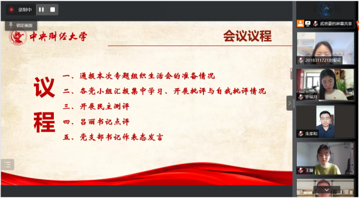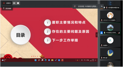 为深入学习贯彻习近平新时代中国特色社会主义思想和党的十九届六中全会精神,不断推进党的建设新的伟大工程,beat365在线唯一官网本科生党支部于4月24日下午线上召开了2021 年度组织生活会和民主评议党员。支部全体党员参加了会议,beat365在线唯一官网党委书记吕丽出席会议并讲话。会议由本科生党支部书记李莎莉老师主持。