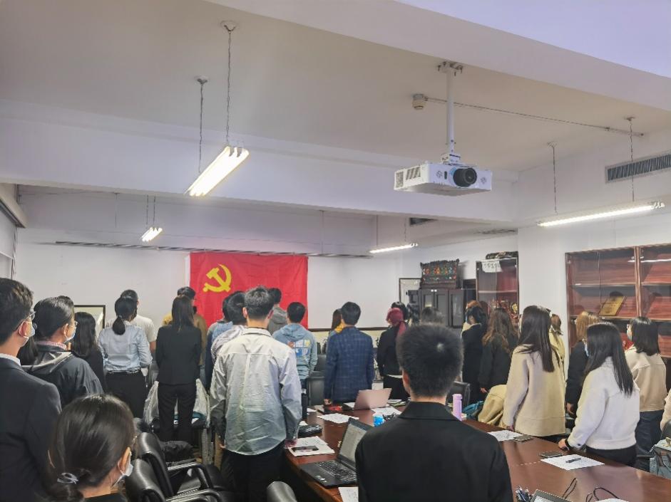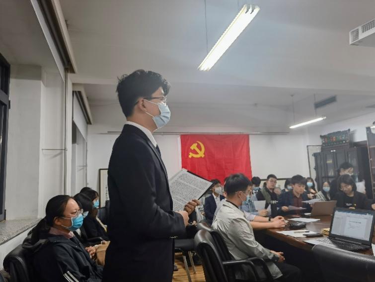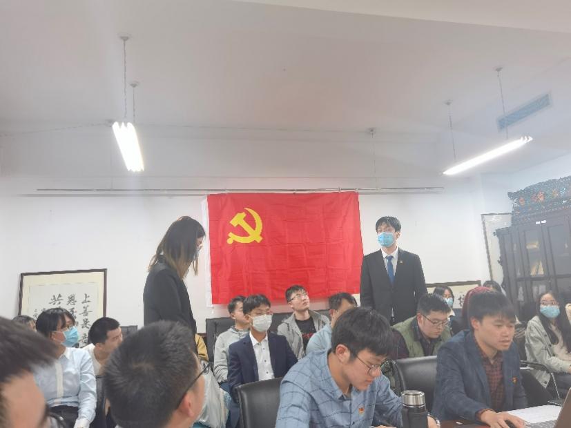 会议最后一项,南琪组织员作为师长和党内前辈进行讲话。南琪组织员简要梳理了预备党员接收流程,向新接收预备党员强调了此次大会的重要意义并表示祝贺;同时对本次大会的组织及现场效果进行评价,既肯定了大会在程序、氛围、效果上的突出表现,也给出了入党介绍人需进一步履行责任、其他党员应有更多参与等建议;最后向与会党员与我支部表达期望,希望党员能“不忘初心、牢记使命”,时刻端正入党动机,充分发挥“一位党员就是一面旗帜”的模范带头作用,支部也要永葆青春活力,继承优良传统,以党史学习教育为契机夯实基础、补齐短板。