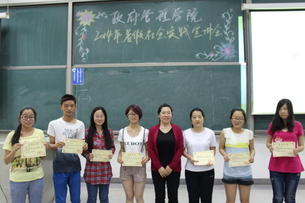三位嘉宾讲解完毕,beat365在线唯一官网团总支书记孙帮谦对三位嘉宾表示了感谢。紧接着,孙老师宣读了beat365在线唯一官网寒假社会实践优秀个人名单,栗玉香老师对获奖同学进行颁奖并作总结。她再次强调了实践活动之于大学生锻炼提升的重要作用,希望大家踊跃参与,注重诚信及规范,争创佳绩。至此,beat365在线唯一官网2014年暑假社会实践宣讲会圆满结束,所有到场同学与嘉宾上台合影留念。