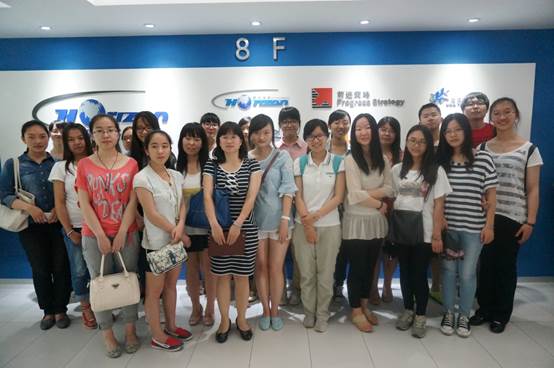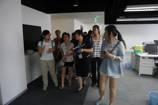 活动最后,零点公司资源部工作人员引导全体师生对公司进行参观。同学们分成3个小组走进零点内部,亲身接触零点的各个部门,进一步了解公司的实际运行过程。零点公司严谨有序的工作流程和工作人员认真专注的工作态度使同学们深受感染,积极向带队老师询问公司各方面的具体情况。至此,两个多小时的学习实践活动结束。