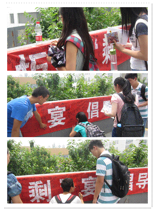 在组织人员的热情宣传下,现场气氛不断高涨,吸引了众多同学驻足询问并踊跃参与。为响应“光盘”行动的号召,同学们纷纷在条幅上签下自己的名字。签名过程中,同学们一笔笔刚劲的书写,一个个专注的神情不仅诠释着对本次活动的支持,更体现了当代大学生积极向上的良好风貌,以及对勤俭节约理念的奉行。签名后,同学们还有机会参与抽奖环节。无论是参加者还是组织者,每个人脸上始终都洋溢着笑容,喜悦之情溢于言表。