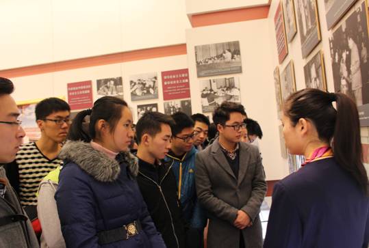 在毛主席纪念室内,同学们重温入团誓词,回想入团时在团旗下的承诺,通过工作人员对毛主席的点滴生活片段的讲解,追忆革命先驱过往的峥嵘岁月,感受老一辈领导人在艰苦岁月的不易。在参观完全国各地群众为纪念敬爱的毛主席所做的纪念品后,同学们在油画《良宵》前合影留念,本次的参观活动到此结束。
