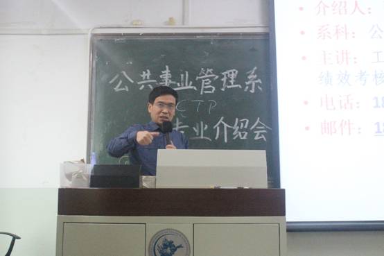 张相林老师负责为同学们介绍公共事业管理专业在本校的课程设置与培养方向。张老师按培养目标、培养要求、实践环节、课程设置、学分及时间分配的顺序介绍了公共事业管理专业培养方向。“做任何事要有精气神,不要犹豫不决,不要这山望着那山高,要坚持。”张老师真挚的告诫字字珠玑,同学们都受益匪浅。