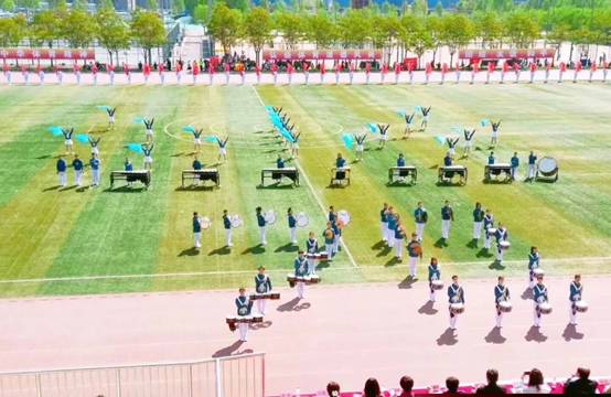 若说如此,紧随其后的校打击乐团则为同学们带来了一场听觉盛宴——《与祖国同行》。轻快明亮的旋律、整齐的鼓点、气势恢宏的乐声……中财学子爱校爱国的真挚感情都浓缩在了这激昂的乐曲之中。琴声清脆,鼓点厚重,灵动的身影伴着鼓点轻晃,弹琴的同学也融入了这乐曲之中;伴随着打击乐进行,青衣白裙的女孩手持蓝色小旗,随着鼓点起舞;优美的身形、流畅的旋转、矫健的动作……女孩们如一只只优美的蝴蝶,身姿轻盈,如同幻化在花海一般。曲终舞停,雷鸣般的掌声为开幕式画上了圆满的句号。