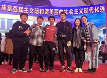 那老师先向同学们阐述了自己之前观展的体会,鼓励同学们通过展览从书本走向现实,了解祖国的伟大成就,思考这一代人的使命。接着,那老师和同学们领取了展览目录,并跟随讲解员,以时间为轴,以年为刻度,观看了“开天辟地”、“改革开放”和“走向复兴”三大主题,细致了解了新中国从成立到现在70年的重大历史成就。同学们不时驻足,或借助科技手段,去阅读和感悟70年的筚路蓝缕,雨雪风霜。同学们表示,国庆游行的花车、满带着历史记忆的图片、振奋人心的视频以及生动有趣的现代科技,展现了中国人民在向前奔跑的路上不断克服困难、坚韧自强、改革创新的品质,带我们回顾了中国共产党带领中国人民一步步的走向复兴、走向富强的伟大历程和光辉成就,心中充满自豪感。