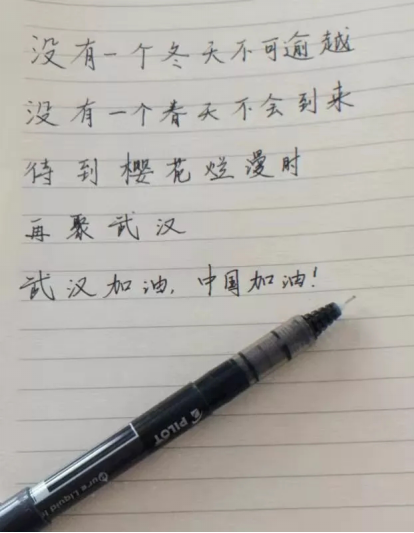 湖北学子手写暖心祝福,以文字传情,为武汉加油。