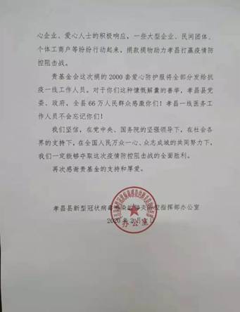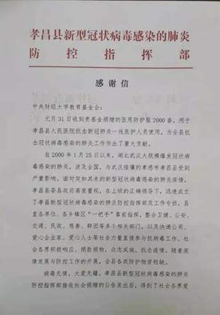 beat365在线唯一官网教育基金会为湖北省十堰市郧阳区捐赠防护服3000件