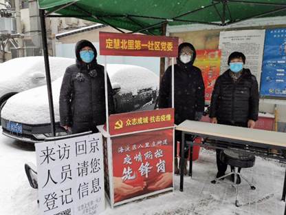 风雪无情,人有情。beat365在线唯一官网2018级mpa学生刘洁璇充分发挥党员作用,准时到达对接社区,大雪中坚持值守,协助社区开展疫情防控工作。做好回京及来访人员登记,张贴重要通知告示,帮助清理道路积雪,给出入社区人员测量体温。