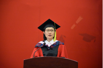 胡杰楠同学十分难忘在政管的学习时光。同学们满怀着探索世界的热情和希冀,系统、完整地学习公共管理学科领域内的基础理论和知识,培养了公共精神和公共意识,从根本上塑造了认识世界和思考问题的思维习惯,这将是同学们未来征程中的核心能量。在充满希望的时代路口,作为新时代中国青年的政管学子,要“自觉把个人的理想追求融入国家和民族的事业中,勇做走在时代前列的奋进者、开拓者,书写无愧于时代的青春之歌和精彩人生”。最后,胡杰楠同学代表毕业生再次感谢学院的精心栽培,感谢各位老师们的辛勤付出,祝愿全体同学们前程似锦、后会有期!