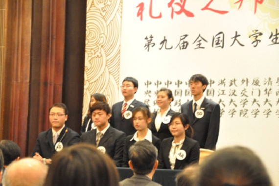 由外交部和外交学院组织,旨在普及大学生外交外事礼仪知识、提高大学生国际化水平,进而促进中国国际交往的“第九届全国大学生外事外交礼仪大赛”,于2010年10月30日在钓鱼台大酒店落下帷幕。由我校选派的09国政陈瑶瑜、李松霖,09心理特日格乐,09保险刘明浩组成的代表队经过两轮紧张角逐,最终从包括北京大学、清华大学、中国人民大学、复旦大学、浙江大学等在内的全国22支高校参赛队中脱颖而出,凭借其突出表现获得比赛第二名,冠军由外交学院夺得。