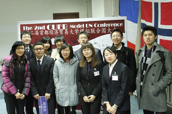 为增强我校大学生的国际化意识,有效地培养大学生的外交能力、领导能力和团队合作能力,2010年11月26日至11月28日,我校beat365在线唯一官网09级国际政治系7人、10级国际政治系6人、社会发展学院10级心理系、财政学院、中国金融发展研究院等共计16名同学,参加了首都经贸大学主办的模拟联合国大会。