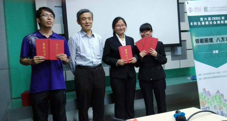 9月12日下午,小组同学赴清华大学公共管理学院参加了此次社会实践挑战赛的决赛。同场竞技的还有来自北京大学、清华大学、山东大学等高校的九支队伍。小组成员通过一个暑假的实地调研及数据分析、报告撰写,运用所罗门四组实验法、相关性检测以及实地调研等方法,顺利完成社会实践,并在赛场上展现出中财学子沉着严谨的独特风范,得到了现场包括安邦咨询高级研究员贺军、香港大学访问学者潘洁等评委老师的称赞和建议。最终经过激烈角逐,小组以总分第三的优异成绩,荣获此次大赛二等奖。颁奖嘉宾为清华大学公共管理学院院长薛澜教授,赛后薛澜院长对小组成员的实践成果进行了高度评价,并指导队员对成果进行完善,以出版成集。