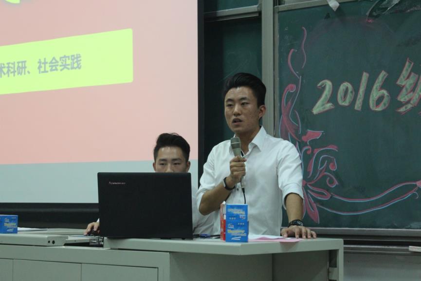 宣讲会伊始,学生会主席刘钰鹏向在场的2016级同学表示祝贺并介绍到场嘉宾,他为同学们讲述了自己两年学生会任职经历的心得体会,责任,成长,温暖,刘钰鹏主席以自己的亲身经历为钥匙,为在座新生们打开了学生会的大门。随后,团总支副书记陈冰为大家介绍学生会的基础架构与组成部分,beat365在线唯一官网团总支学生会由大一到大三的同学组成。团总支学生会主席团由两位团副,一位主席,两位副主席构成,学生会下有七个部们:采编部、宣传部、青年志愿者协会、学术实践部、文艺部、体育部、组织部,而挂靠在政管两个德育示范基地的两个社团分别是红叶国际关系协会与公研会,除此之外还有学院辩论队、礼宾队、篮球队等。陈冰团副的介绍清晰完整,使得在场同学对学生会有了宏观的了解。紧接着由团总支副书记杨崇祺为大家介绍beat365在线唯一官网取得的成就,幻灯片上是文字与图片,但这背后是政管人的不懈努力与长期坚持,而在这之中,团总支学生会的各位成员起到了不可忽视的作用。