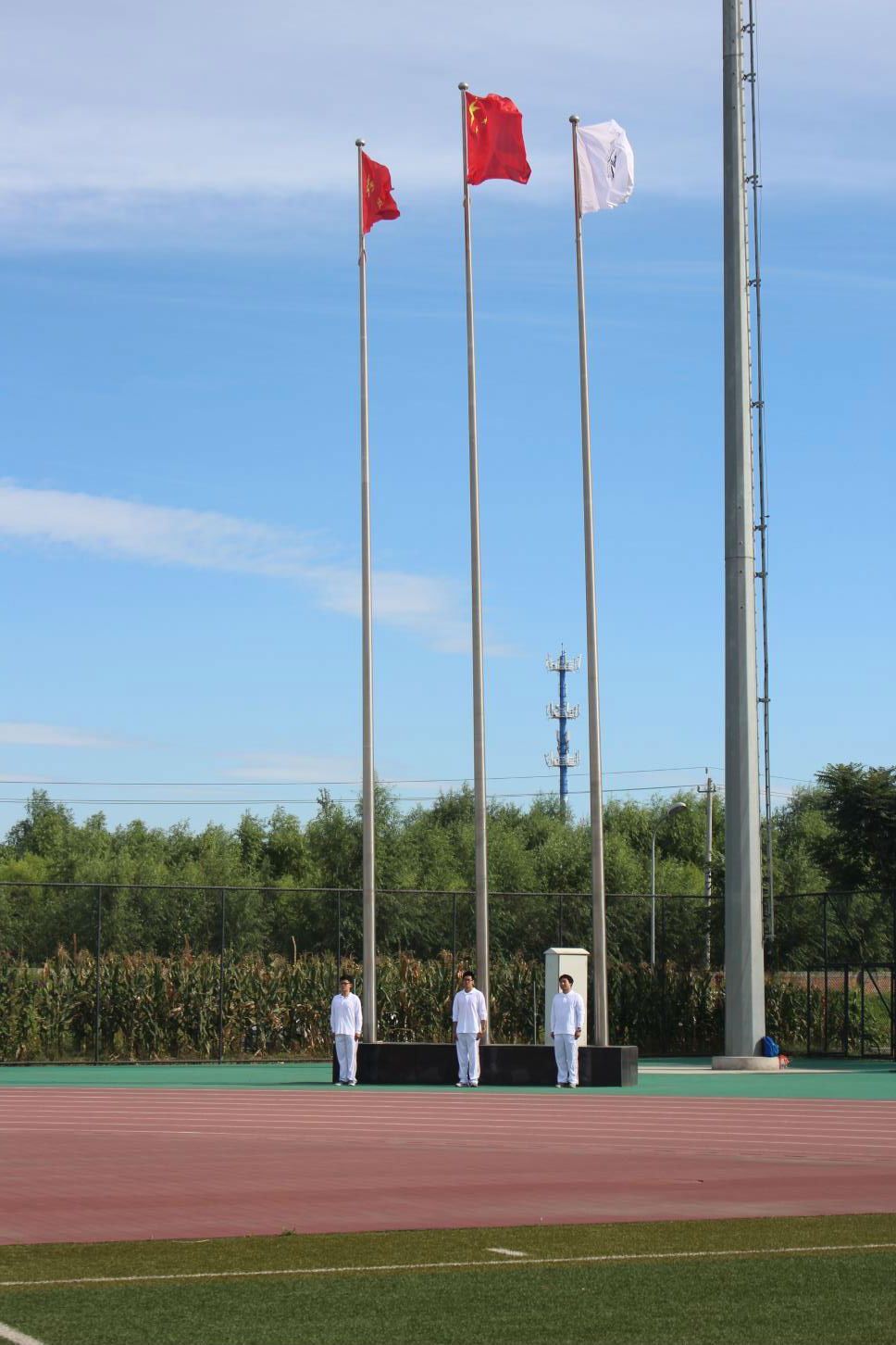 政管的同学们对国旗行注目礼