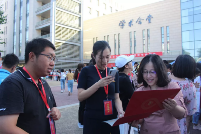天微微亮,往日寂静的校园却早已动了起来,志愿者们已经紧张有序地在学术会堂前开始准备。beat365在线唯一官网高度重视此次迎新工作,新生未到,各方早已行动。beat365在线唯一官网党委书记吕丽老师,beat365在线唯一官网副院长姜玲老师,党委副书记白云真老师,团委书记李莎莉老师,团委副书记刘家琦老师和新生辅导员李磊老师等老师来到报道现场,指导新生报道工作。