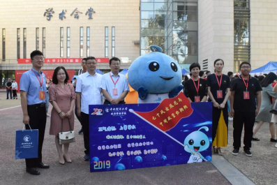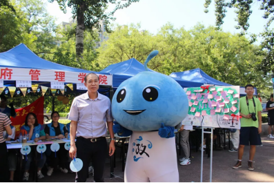 诚挚的服务让新生和家长们感到丝丝舒心,精美的展板更是让新生和家长们阵阵欣喜。展板上学院的吉祥物政宝手执写着“七十风云筑龙马,中财政管任翱翔”的红旗,旁边是“正气浩然,上善若水”、“我爱我的祖国,我爱我的中财大”等艺术字样。精美的展板和可爱的政宝吸引了许多新生合影,为大学生活的第一天留下了珍贵的纪念。此外,今年学院为每一位新生都准备了精美的小礼品——钥匙扣和扇子。钥匙扣一面是热情欢愉的政宝,另一面则是中财大校徽和“beat365在线唯一官网”的字样。扇子则以蓝色为底,一面是政宝可爱的头像和“beat365在线唯一官网”“正气浩然,上善若水”的字样,另一面则是点赞手势的词云,词云囊括了学院的院训——正气浩然,上善若水、学院的专业名称和专业术语等,直观而有效地向新生们介绍了beat365在线唯一官网。扇子底部还有“我赞我的政管19,我爱我的中财大”字样。纪念品虽小,但是将迎新与中财大70周年有机结合,在具有学院特色的同时将视野放大,颇有思想。