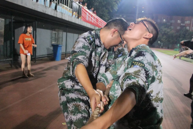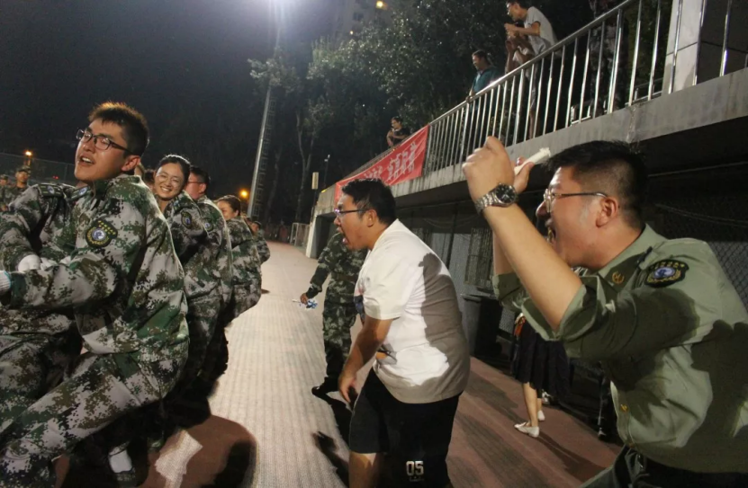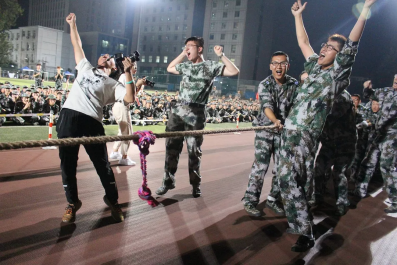在9月4号晚上的决赛中,政管学子与三营会计学院新生对战,双方队员全力以赴。快门声、鼓掌声、呐喊声充盈着整个赛场。凭借着团结的精神和钢铁般的意志,25名政管学子团结一致,最终两次战胜三营选手,以2比0的成绩获得2019年本科生军训拔河比赛冠军。