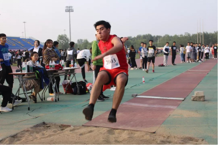 下午16点整,夕阳已渐渐隐没,但这并未消减运动员们比赛的热情,此刻,翰林同学代表beat365在线唯一官网参加男子跳远项目。只见翰林同学身着红色的运动装,昭示了他心中必胜的信念,也可见他的对比赛的重视。在一段迅速的助跑后,翰林同学双脚用力蹬地,高高跃起,然后在空中努力将双脚伸向前方,最后轻轻落地,好一次漂亮的跳远!希望翰林同学在今后中也能像跳远一样,越过人生的沟壑,跃向光明!