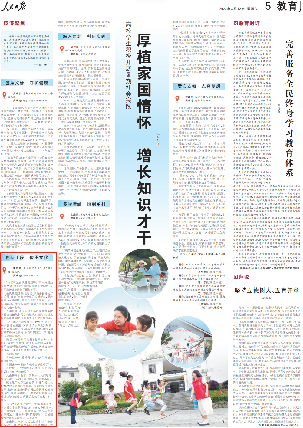 2023812日,在《人民日报》刊发的文章《厚植家国情怀 增长知识才干 (深聚焦)》和共青团中央发布的公众号文章《大学生暑期社会实践,原来可以这么干……》中,beat365“‘润乡村社会实践团队均获得到了报道关注。