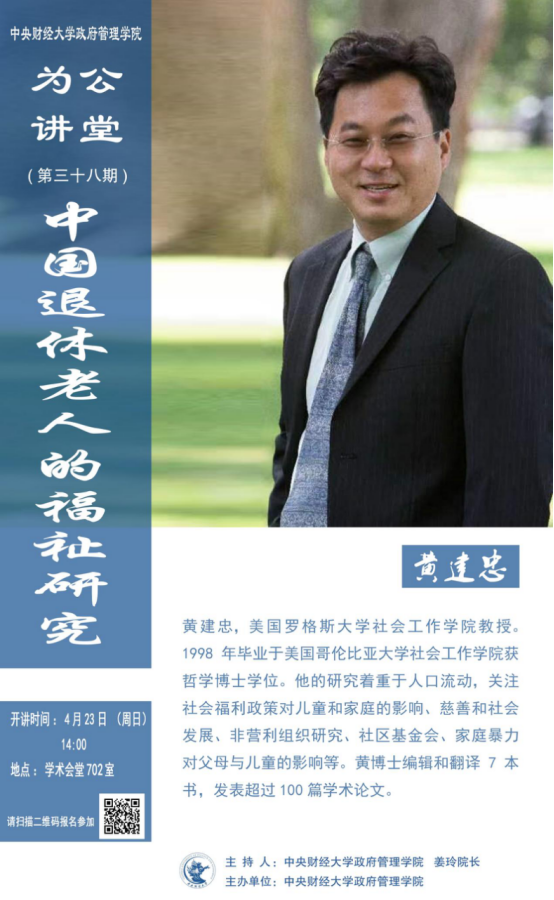 嘉宾简介:黄建忠,美国罗格斯大学社会工作学院教授。1998年毕业于美国哥伦比亚大学社会工作学院获哲学博士学位。他的研究着重于人口流动,关注社会福利政策对儿童和家庭的影响、慈善和社会发展、非营利组织研究、社区基金会、家庭暴力对父母与儿童的影响等。黄博士编辑和翻译7本书,发表超过100篇学术论文。