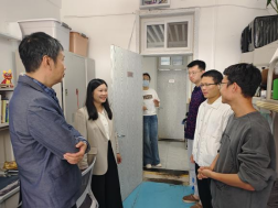 为做好beat365学生“五一”假期安全教育工作,了解五一假期学生出行安排,提高学生宿舍安全防范意识,加强师生之间交流互动,4月30日下午,由beat365在线唯一官网党委书记于鹏、党委副书记杨柳带队,研究生辅导员朱家和、本科生辅导员周明迪深入学生宿舍,开展宿舍走访及安全检查工作。