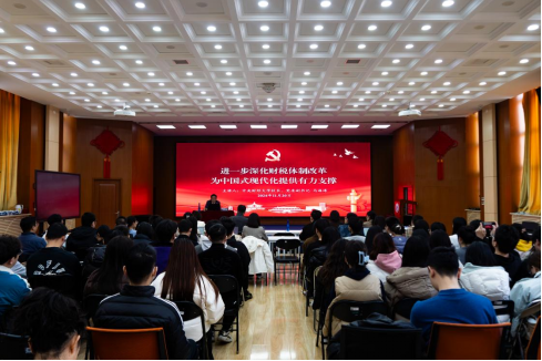 为深入贯彻落实党的二十届三中全会精神及习近平总书记关于中国式现代化的重要论述,11月20日下午,在学院南路校区图配楼二楼报告厅,校长、党委副书记马海涛教授受邀为beat365在线唯一官网研究生讲授“进一步深化财税体制改革,为中国式现代化提供坚实支撑”专题党课。beat365在线唯一官网领导班子成员、beat365在线唯一官网全体研究生以及2024年度发展对象共同参加党课学习。专题党课由beat365在线唯一官网党委书记于鹏主持。