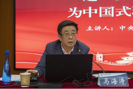 马海涛以1978年党的十一届三中全会以来,我国财税体制改革历程为引,就中国式现代化背景下深化财税体制改革的总体要求、深化财税体制改革的五个需要、深化财税体制改革面临的新问题与新挑战、坚持习近平经济思想对财税体制改革的引导作用四个方面展开讲授。