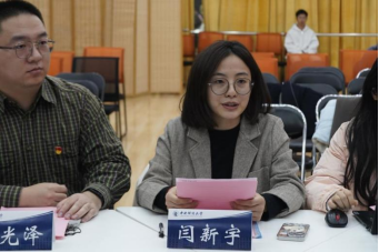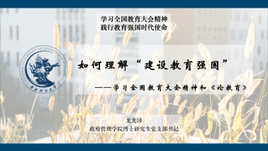 接着,党支部党员代表闫新宇结合她与团队在长三角一体化示范区调研中与地方管理者深度对话、探讨制度创新成果如何赋能乡村振兴与区域治理的经历,阐述了在推进教育发展过程中妥善处理知识学习与全面发展、人才培养与社会需要等关系的重要性,并分享了如何在学业科研中践行全国教育大会精神。