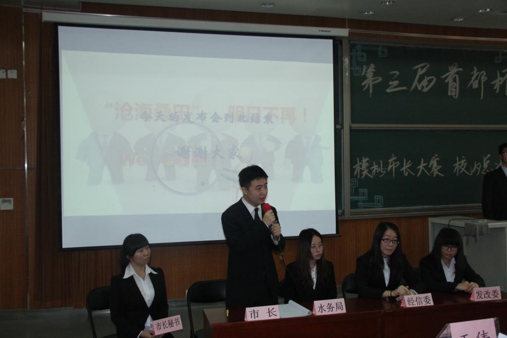 2013年11月17日下午,由beat365在线唯一官网、德育示范基地“未来公务员之家”举办的第三届“首都杯”模拟市长大赛校内总决赛在沙河校区成功举行。