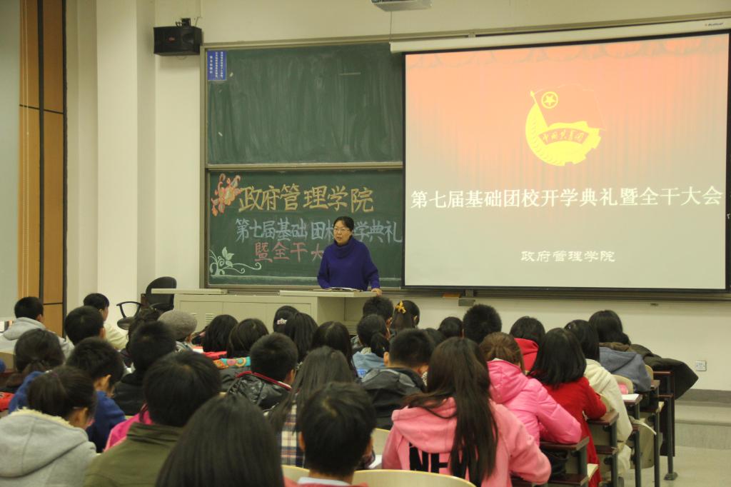 紧接着,学员们迎来了第七届基础团校的开学第一课。团总支书记李飞凤老师分别从团学工作的目的,宗旨,方法,各部门常规工作,工作一般流程,经费报销制度,干部选拔和任免制度,综测加分制度等方面对学员们进行了细致的培训,希望在座的团校学员都能为学院的学生工作出一份力。