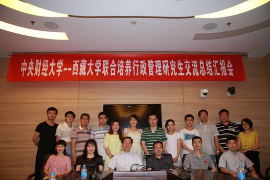 西藏大学交流生代表对他们在中财的学习生活情况作了题为“怀揣梦想、激昂青春”的总结汇报。从学习、生活、足迹三个方面总结了他们中财岁月的点点滴滴。表示他们在中财的学习时光虽短暂但幸福快乐,既学到了知识,又开阔了视野,且收获了友谊。在中财的这段青春岁月将是他们人生中一笔宝贵的财富。他们祝福中财桃李满天下,祝愿中财——藏大友谊地久天长。